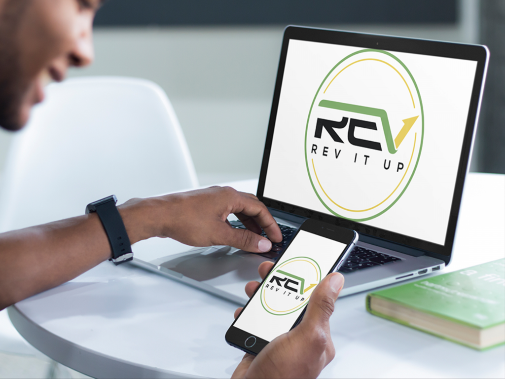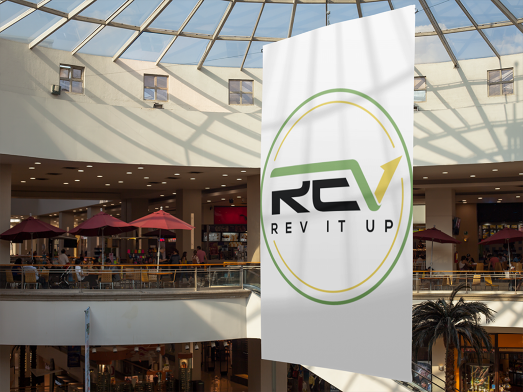The main objective was to symbolize growth in a friendly yet attention-grabbing, authoritative manner with a Jamaican theme. Friendliness - represented by the two outer circles. Attention-Grabbing - new & unfamiliar design with some obscurity in the letters 'R' and 'E' as well as with the breaking of the inner circle. Authority - The combination of the circle with some angularity in the font aid in representing authority. Additionally; using the color black as the tertiary color in the logo will add to its professionalism & authority. Growth - The arrow on the end of the V in REV is used to symbolize growth. Jamaica is represented in the color selection being Green, Gold & Black.